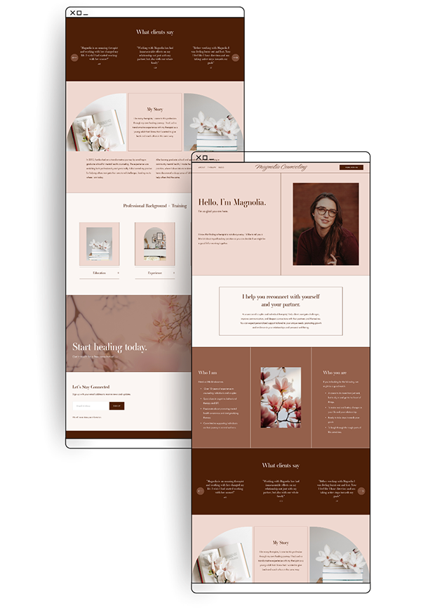 Magnolia is perfect for multi-service providers who want to create a sense of grounded warmth and intimate connection in their online presence.