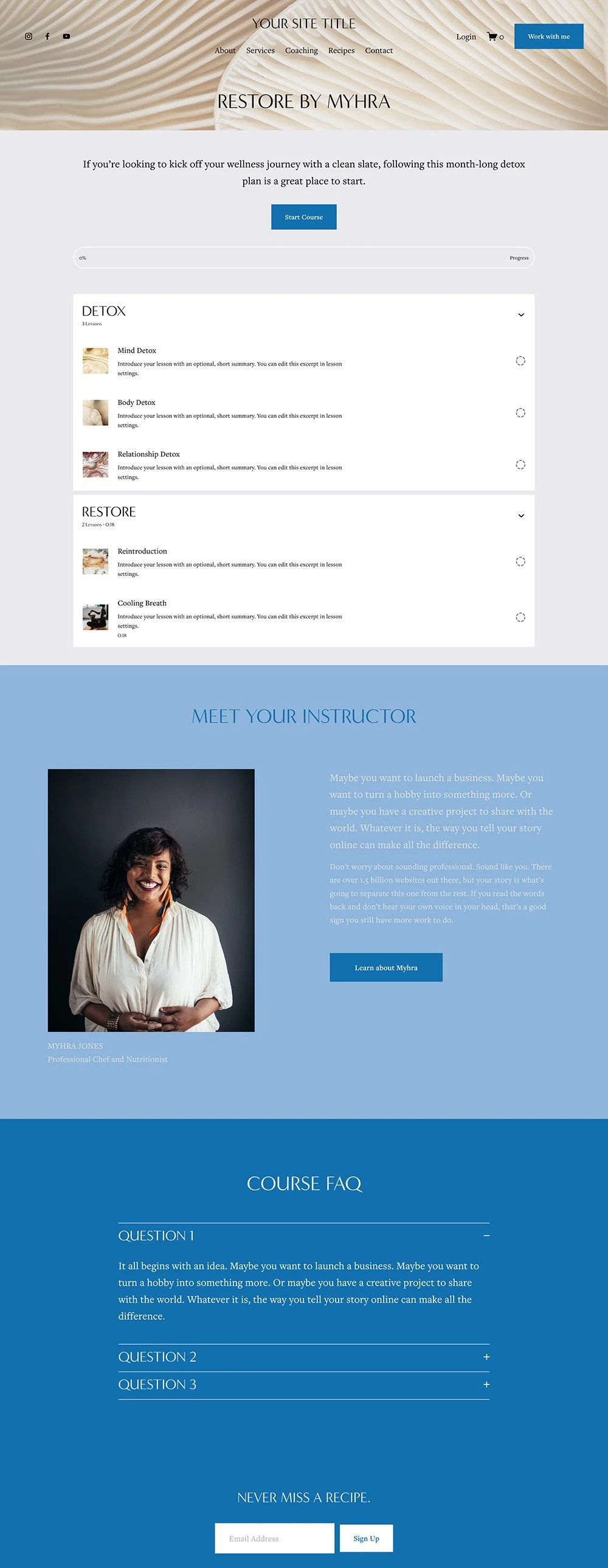 Here’s an example of a course layout from one of the free templates available in *Squarespace: